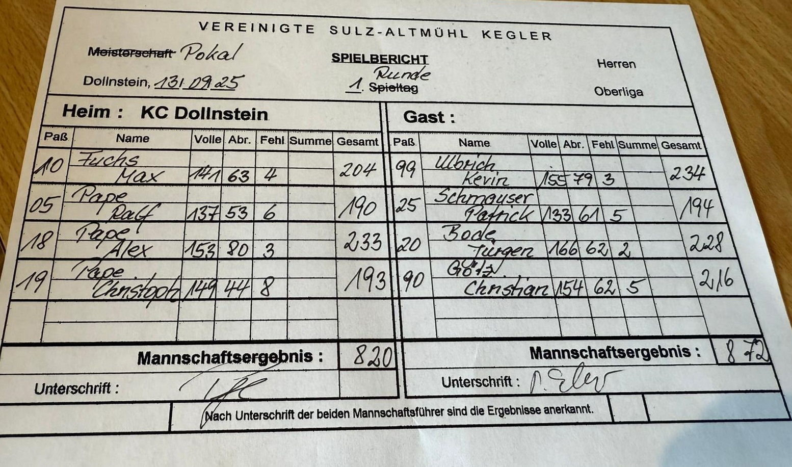 7 | Mi 01.10.2025 | 19:00 | KC Greding 2 | 1. Liga | 790 | 857 | KC Dollnstein 1 | Oberliga | |
