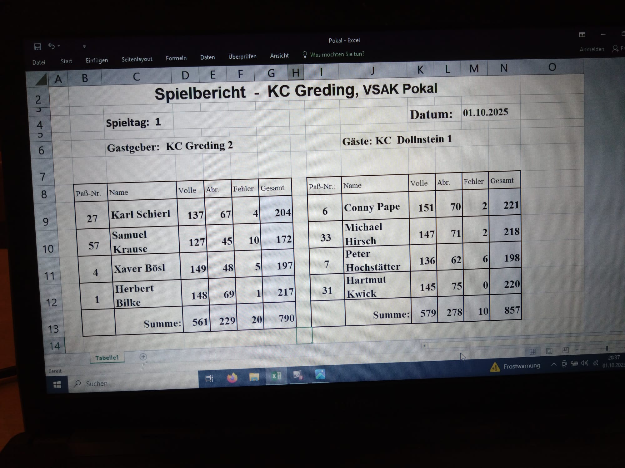 | 20 | Sa 22.11.2025 | 12:00 | KC Dollnstein 1 | Oberliga | 926 | 879 | KC Mühlhausen 1 | Oberliga | https://www.vsak.de/wp-content/uploads/2025/11/IMG-20251122-WA0005.jpg |