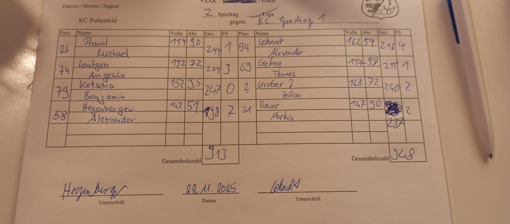 | 21 | Sa 22.11.2025 | 14:00 | KC Pollenfeld 1 | Oberliga | 913 | 948 | KC Greding 1 | Oberliga | https://www.vsak.de/wp-content/uploads/2025/11/IMG-20251122-WA0010.jpg |