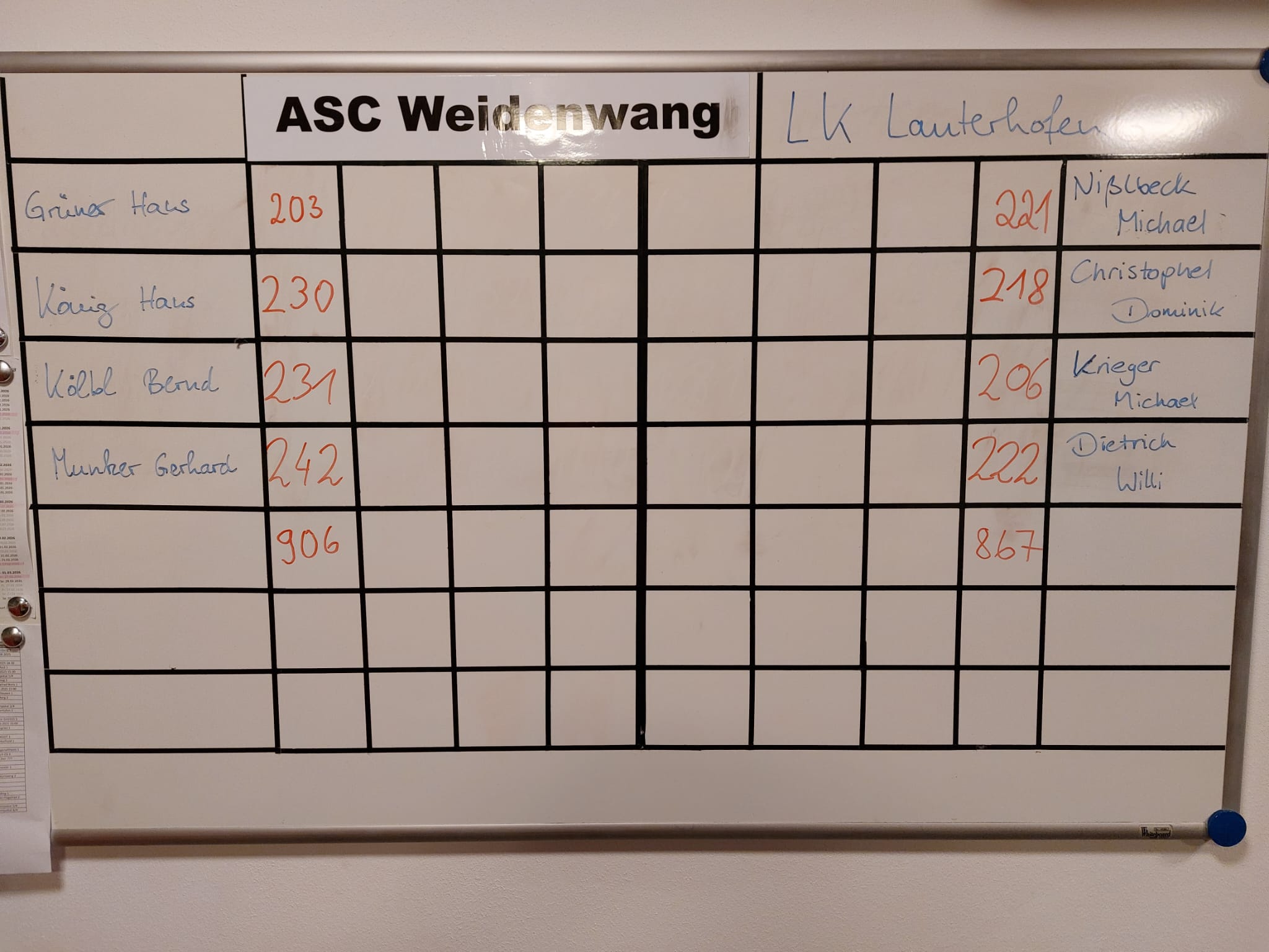 | 18 | Di 25.11.2025 | 18:30 | ASC Weidenwang 1 | Oberliga | 906 | 867 | LK Lauterhofen 1 | Oberliga | https://www.vsak.de/wp-content/uploads/2025/11/IMG-20251126-WA0001.jpg |